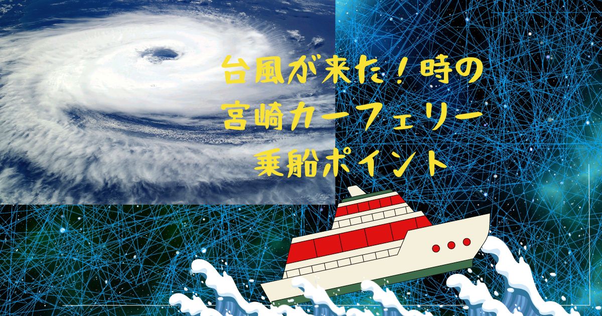 宮崎カーフェリーの乗船日と台風がぶつかって悩む方もいらっしゃるでしょう。宮崎カーフェリーが台風のときに乗船する場合の注意点を体験からまとめました。