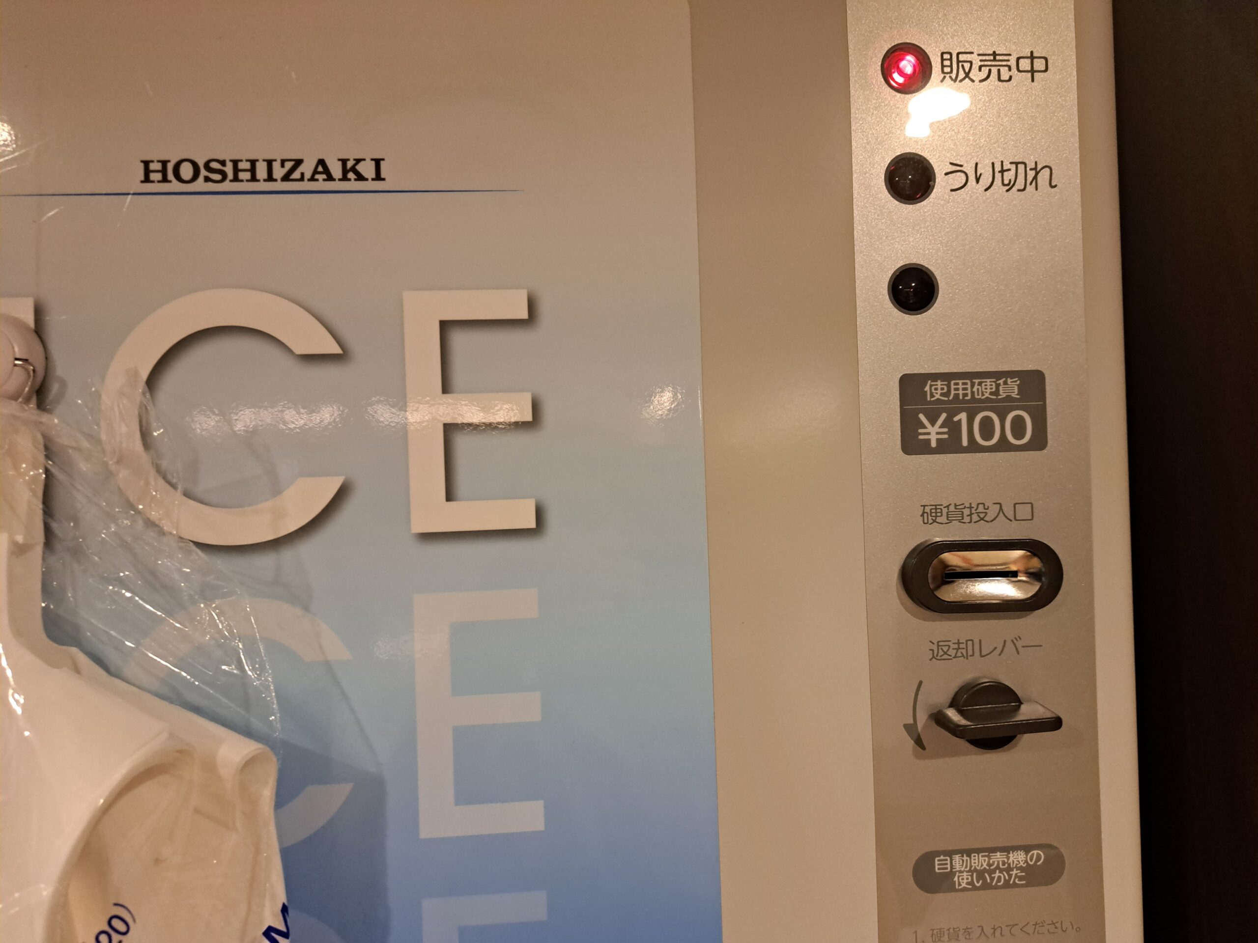 4階の自動販売機スペースには、有料ですが氷も売っています。スティックコーヒーを持ち込んでアイスコーヒーを作りたいとか、焼酎のロックを楽しみたいときには購入するとよいでしょう。