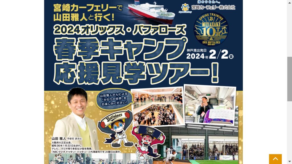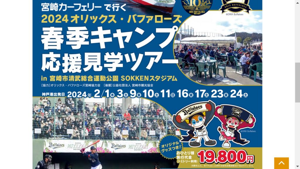 オリックスのキャンプへは貸切バス付の宮崎カーフェリーツアーが便利!